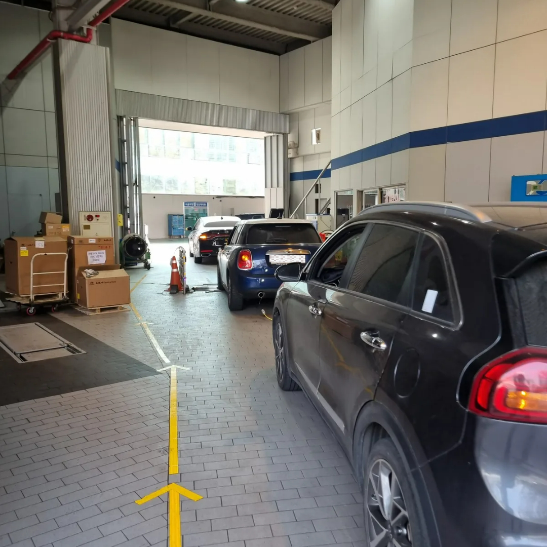 센터에 들어서면 직원의 안내에 따라 지정 장소에 주차 한 뒤 시동을 끈 뒤에 키를 놓고 내리시면 됩니다.