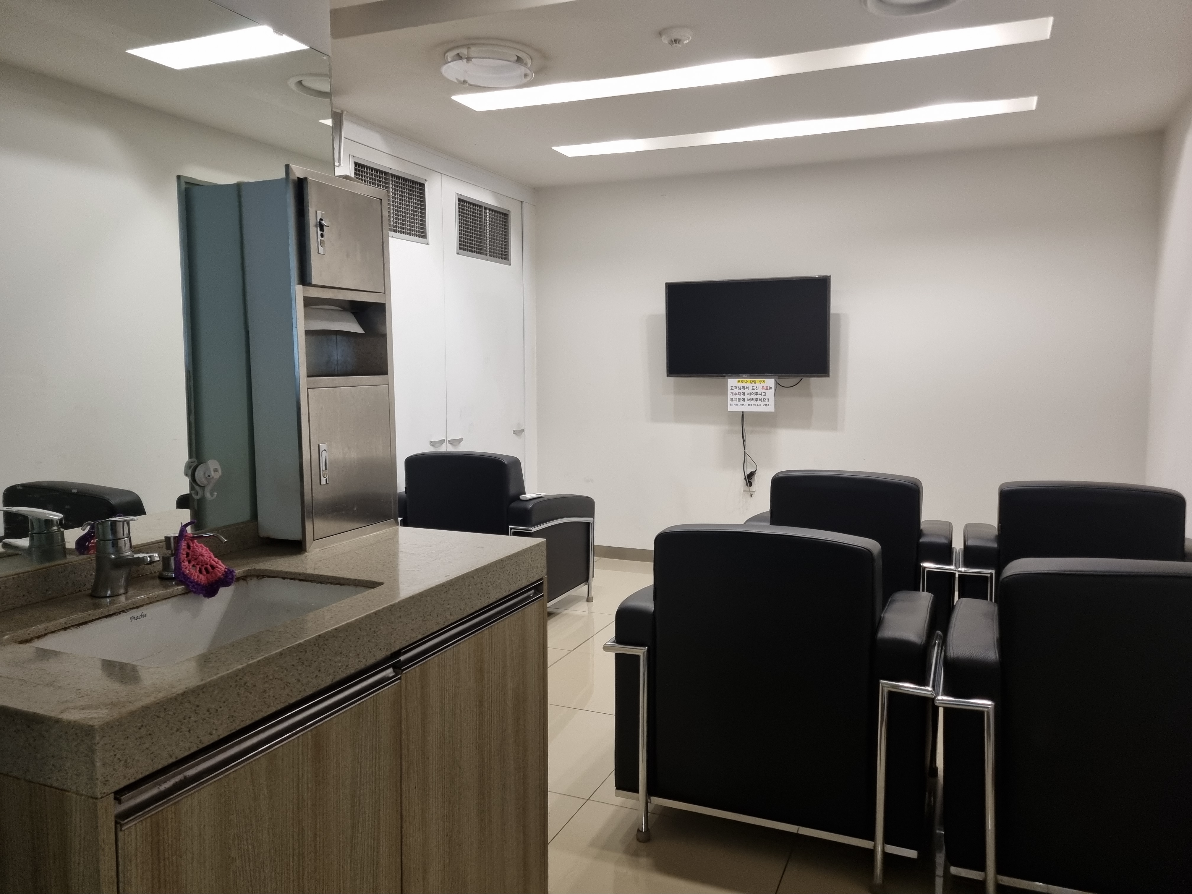 기다리는 동안은 TV 시청 외에도 물과 가벼운 차가 준비되어 있고, 간단하게 인터넷 검색이 가능한 PC도 잘 비치되어 있습니다.
