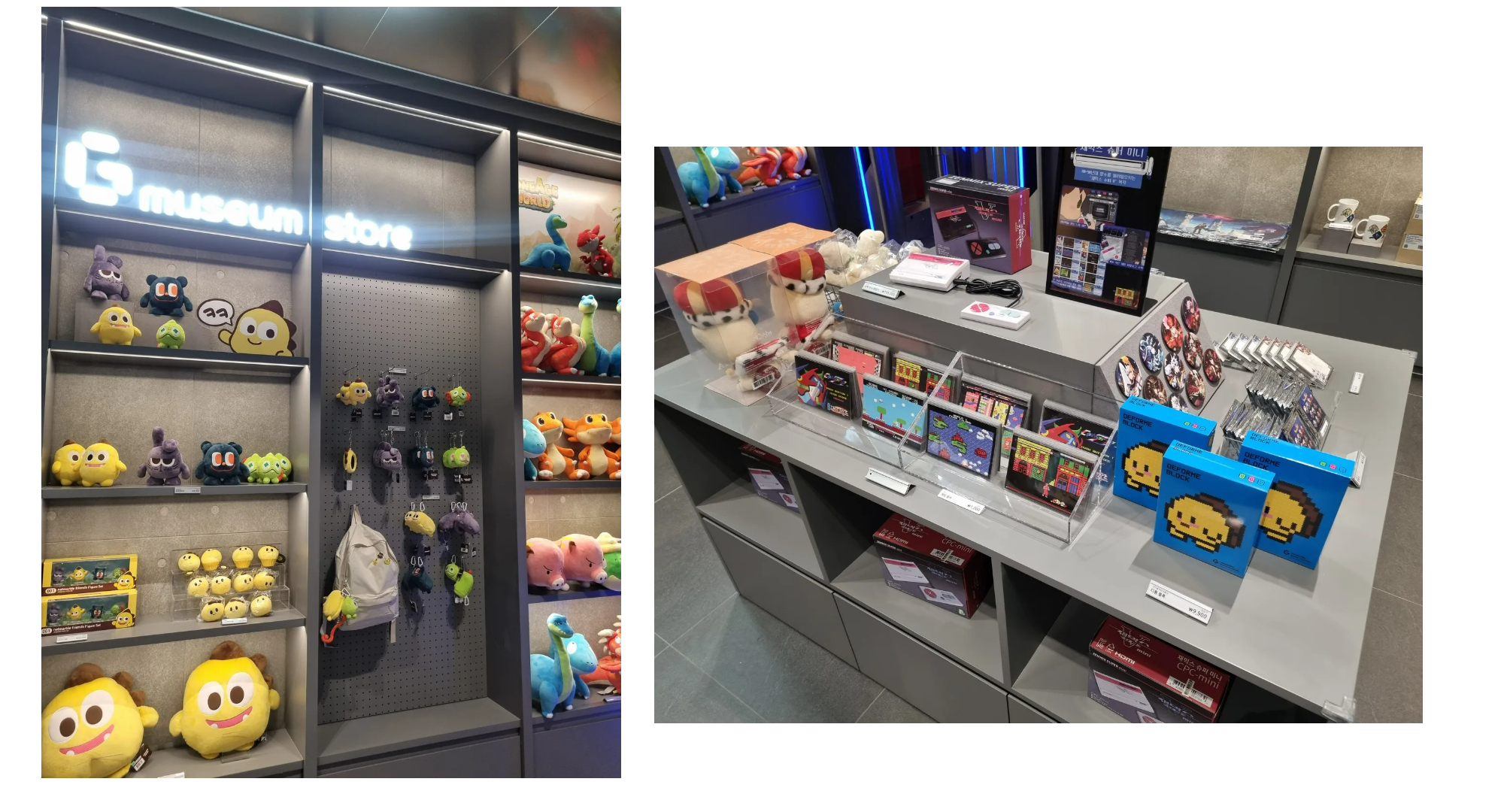 네, 기념품 숍이 운영 중이며, 다양한 게임 관련 상품을 구매할 수 있습니다.