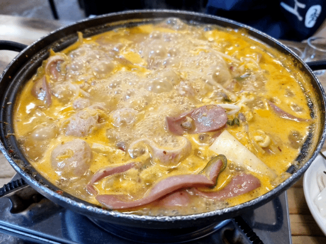 간판처럼 사골 부대찌개 다운 찐한 국물과 우유빛이 감돕니다. 안먹어도 알거 같은데...
